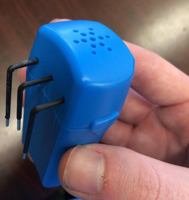 Аппарат, помогающий слепым определять уровень воды в емкости. Когда вода соприкасается с "усиками", он издает сигнал