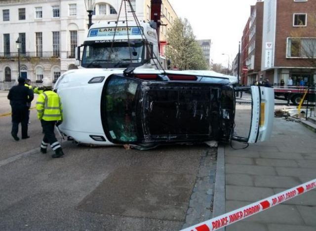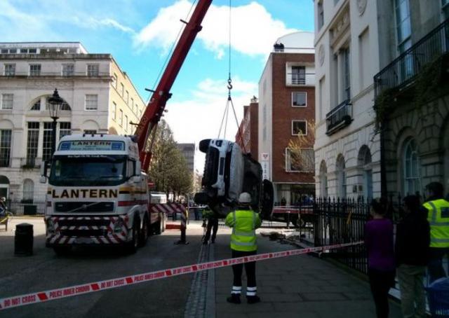 Range Rover провалилися в подвал здания в Лондоне (8 фото)
