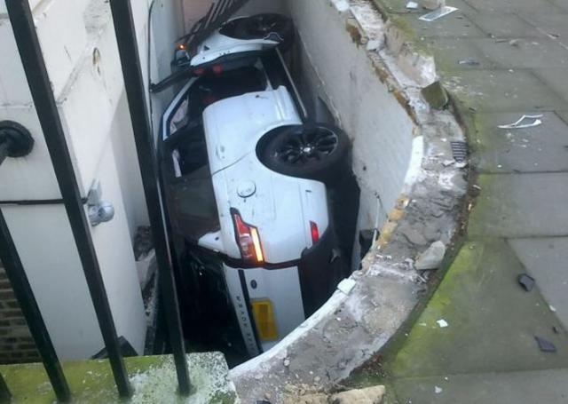 На одной из улиц Лондона было явно мало места для парковки внедорожника Range Rover. Под чутким управлением хозяйки он снес металлические ограждения и застрял на дне ямы глубиной в 4 метра. В салоне находились 4 женщины, к счастью они не пострадали. Как это было? Смотрим в продолжении поста.