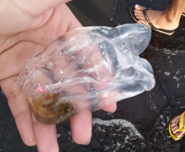 Как выяснилось, студнеобразное широкоротое создание относится к подтипу оболочников сальпы. Так как они обитают на поверхности морей, их тело на 99% состоит из воды, поэтому они прозрачны.
