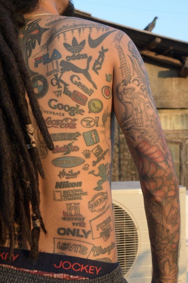 Джейсон Джордж нанес на свое тело 442 логотипа брендов (6 фото)