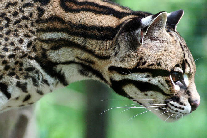 Оцелот (или Leopardus pardalis), также известный как карликовый леопард, является хищным млекопитающим из семейства кошачьих, ареалом обитания которого являются страны Южной и Центральной Америки и Мексика. Однако, как сообщается, это животное встречается также в более северных районах вплоть до Техаса, а также и на острове Тринидад, в Карибском бассейне.