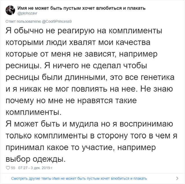 Многие из нас любят получать комплименты. Услышать что-то хорошее в своей адрес - это всегда приятно. Но в действительности, некоторые комплименты звучат крайне сомнительно и могут даже оскорбить человека. Пользовательница Твиттера Джелс создала очень полезный и познавательный тред про комплименты.