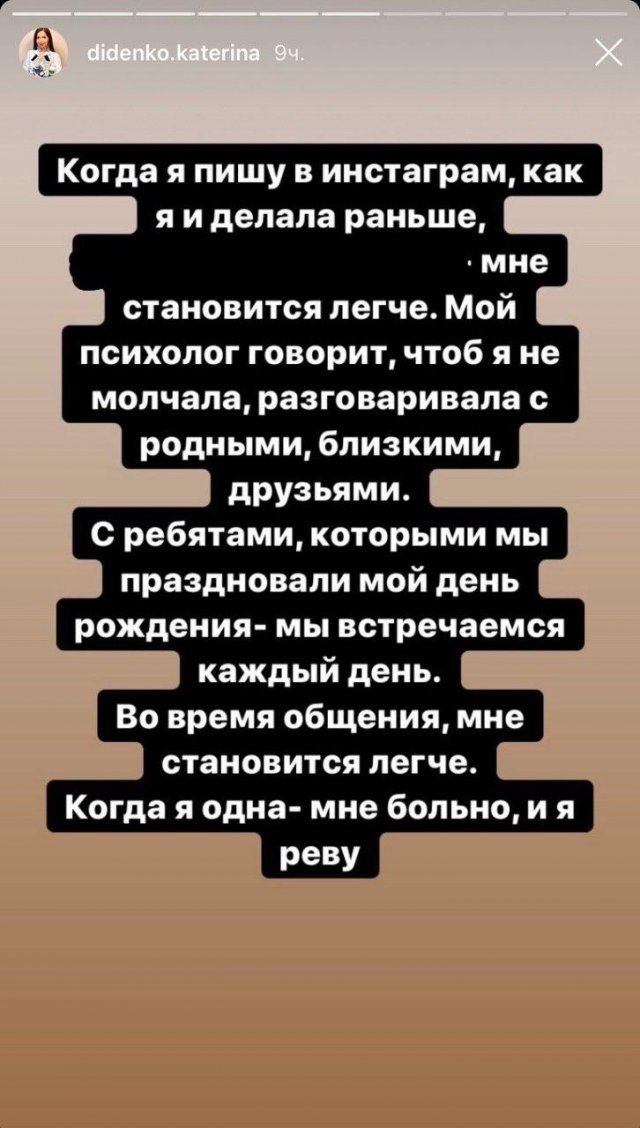 После вечеринки блогера Екатерины Диденко погибло трое человек, а сама безутешная вдова решила не сидеть дома, а продолжает общаться с подписчиками и посещать ток-шоу, рассказывая о своем горе. Недавно она вышла на «тропу войны» с теми, кто травит ее после случившейся трагедии. Кроме того, она отправляет «прощальные» послания погибшему мужу.
