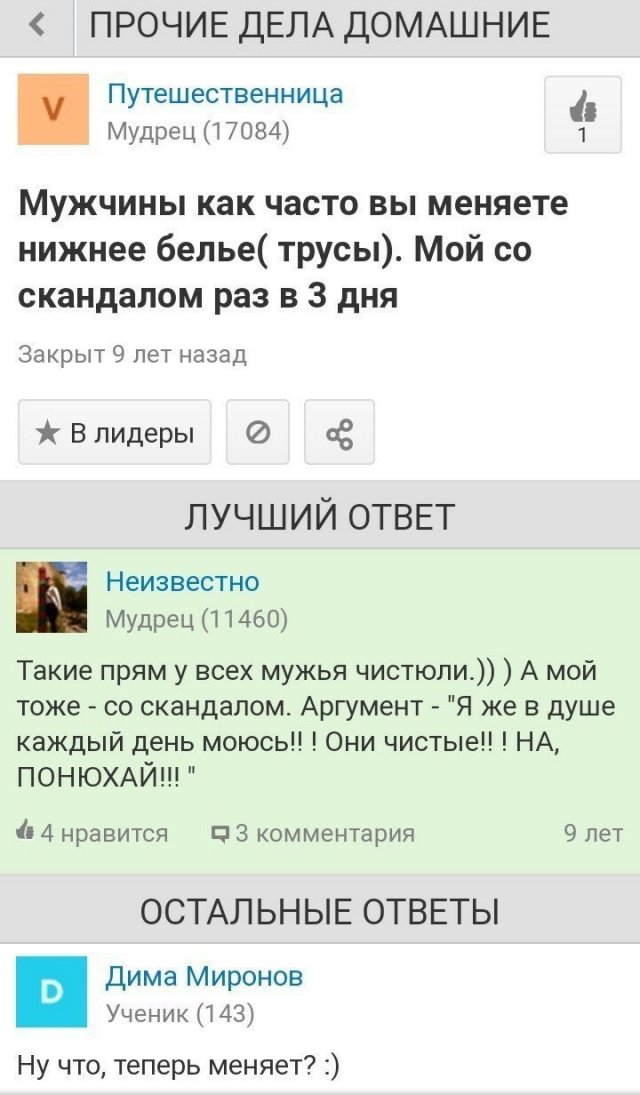 В Интернете, как известно, существует огромное количество женских форумов и сервисов, где девушки могут оставлять свои вопросы. И далеко не всегда обсуждаемые темы отличаются адекватностью и нормальностью. Зачастую дамочки обсуждают личную жизнь, проблемы в отношениях, жалуются на своих мужей, просят погадать им по фотографии. В общем, в этой подборке вы увидите самые безумные темы, обсуждаемые на женских форумах и не только.