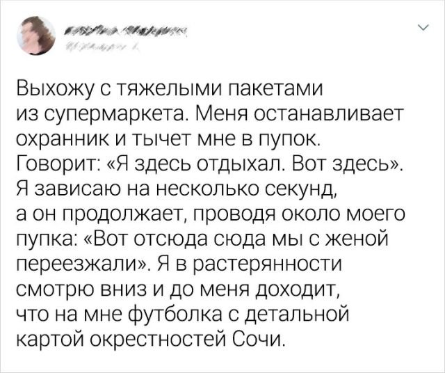 Читая эти забавные твиты, сразу вспоминается крылатая фраза самого знаменитого охранника на российском телевидении: "Понять и просить". Эти маленькие мини-истории запросто могли бы сойти за основу сюжета комедийного фильма. Давайте их посмотрим.