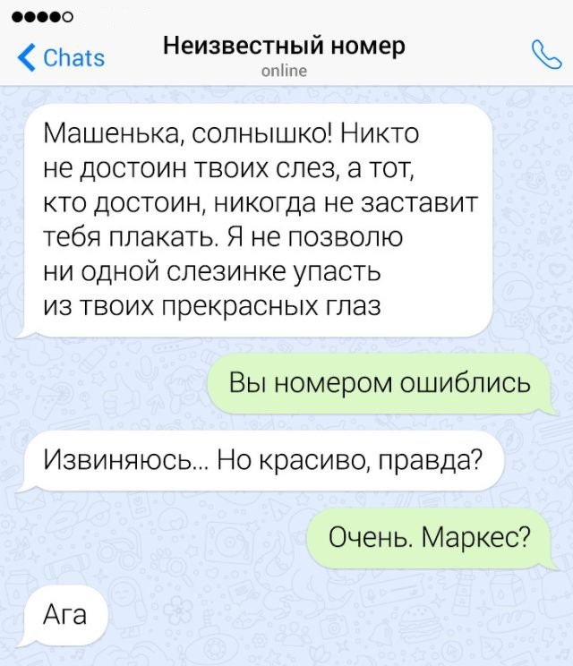 Когда человек ошибается номером, как правило, все общение состоит из двух фраз: "Вы не туда попали" и "Извините". Но в данной подборке все получилось намного смешнее и интереснее. Давайте поднимем себе настроение и посмотрим подборку забавных переписок от людей, которые ошиблись номером.