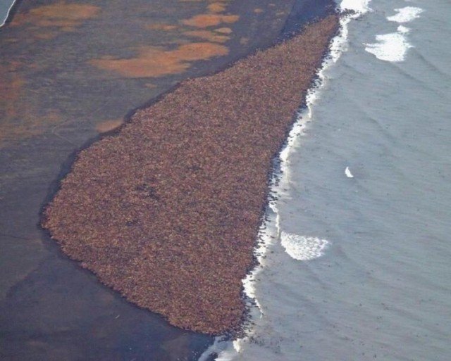 Сначала может показаться, что это каменистый берег, но это порядка 35 000 тюленей.