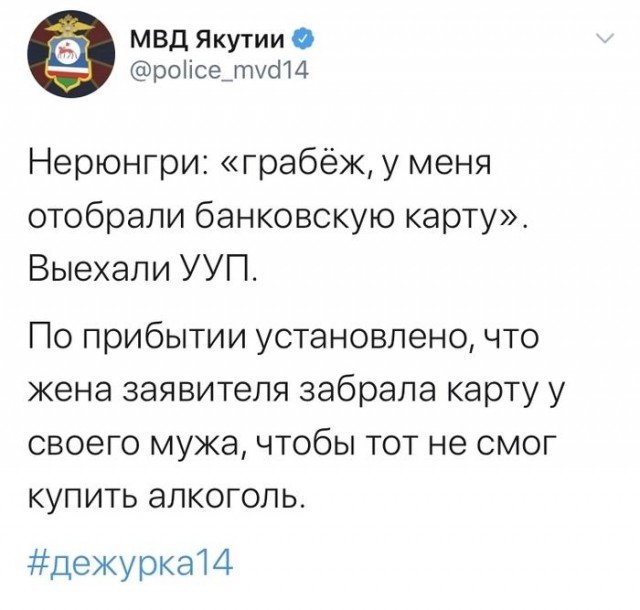 В Якутии у МВД есть свой Twitter. Сотрудники полиции с радостью рассказывают о самых странных и нелепых вызовах, что может посмешить любого.