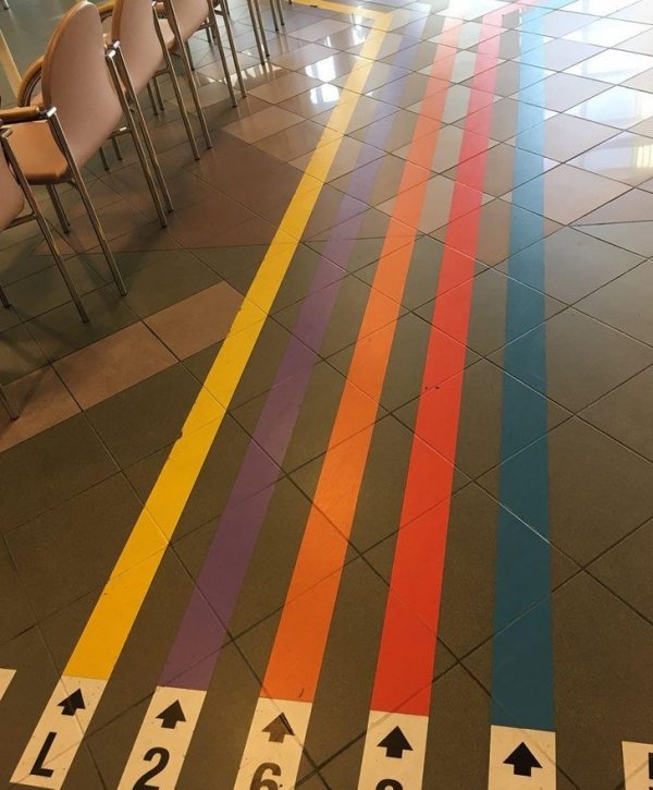 В финских поликлиниках и больницах на полу рисуют разноцветные линии. Поэтому в регистратуре людей направляют "по цвету"
