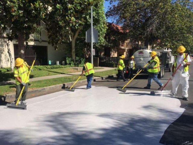 В Лос-Анджелесе асфальт перекрасили в белый цвет (5 фото)