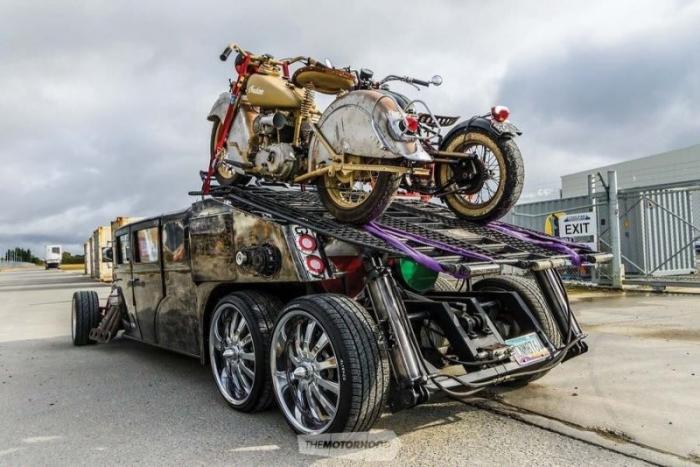 Этот шестиколесный автомобиль называется Essex 1927, он был построен Дэвидом Джеффри из Bellarat Customs в Новой Зеландии и представлен в США на выставке SEMA 2019. Сейчас кастом выставлен на eBay, продавец планирует выручить не менее 79 980 долларов.