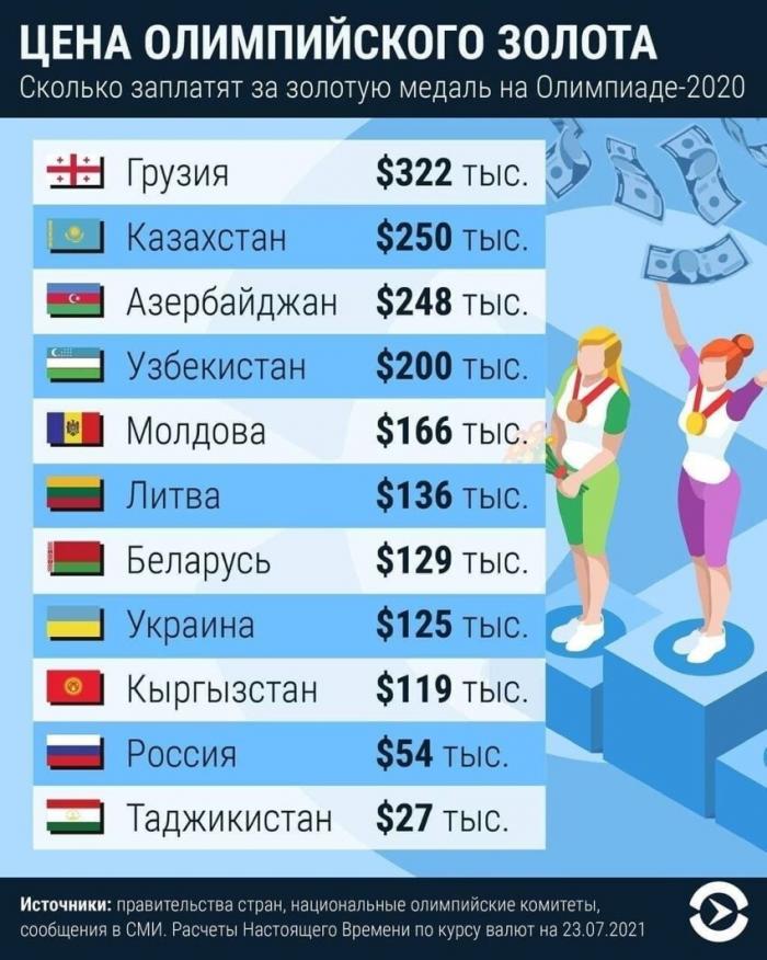 Также стало известно, сколько платят своим спортсменам другие страны. Выяснилась парадоксальная вещь: чем беднее государство, тем выше призовые.
